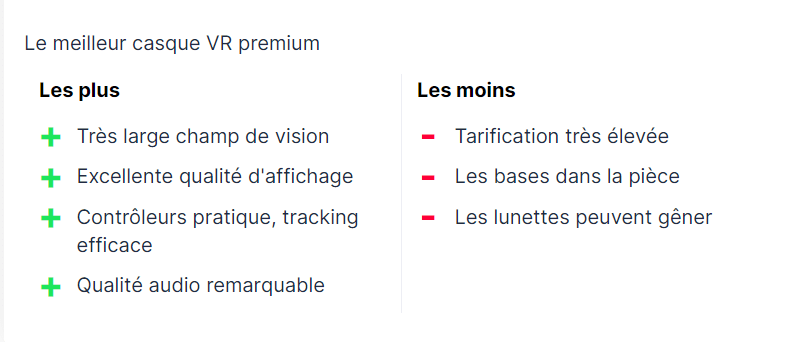 C’est un bon casque VR, qui parvient à cocher la plupart des cases : confort, liberté en jeu, facilité d’utilisation et de configuration. Le seul regret vient des écouteurs intégrés, qui ne sont pas à la hauteur du casque. Il faudra donc privilégier son propre système audio. Néanmoins, et au regard de son prix très raisonnable, les caractéristiques du Rift S en font un excellent casque VR.
